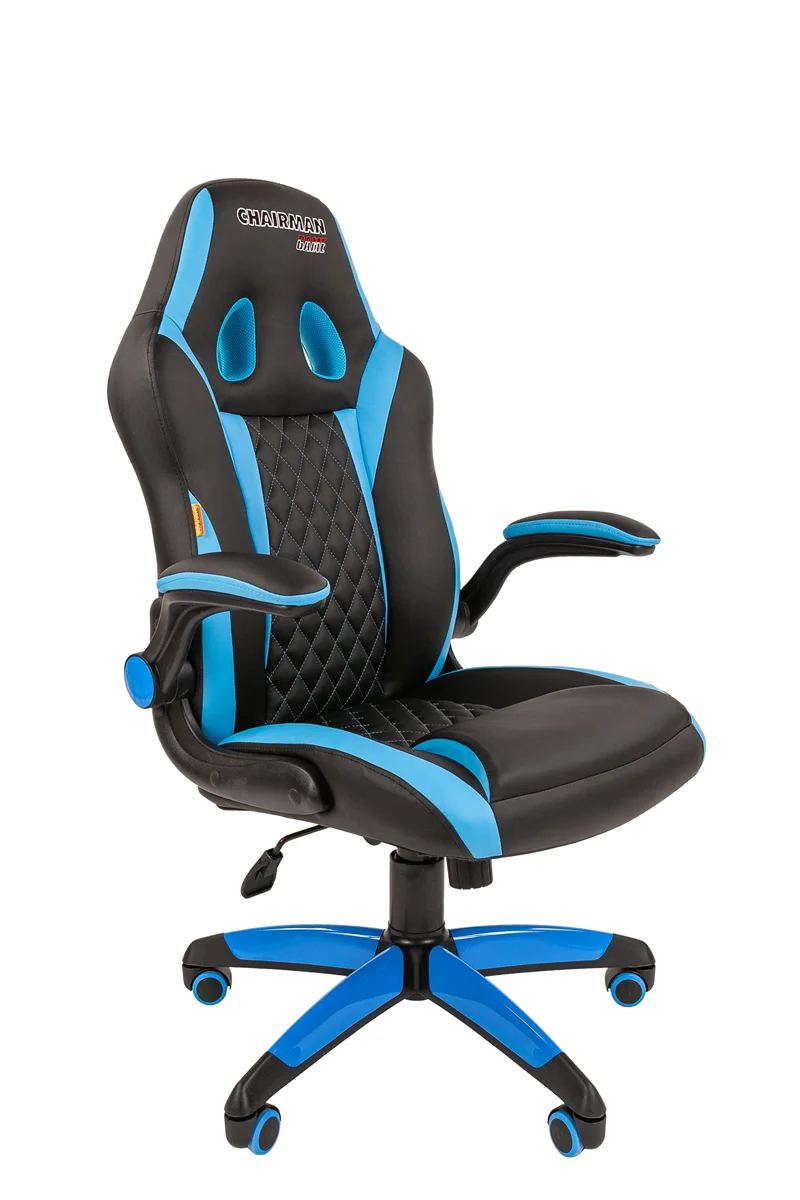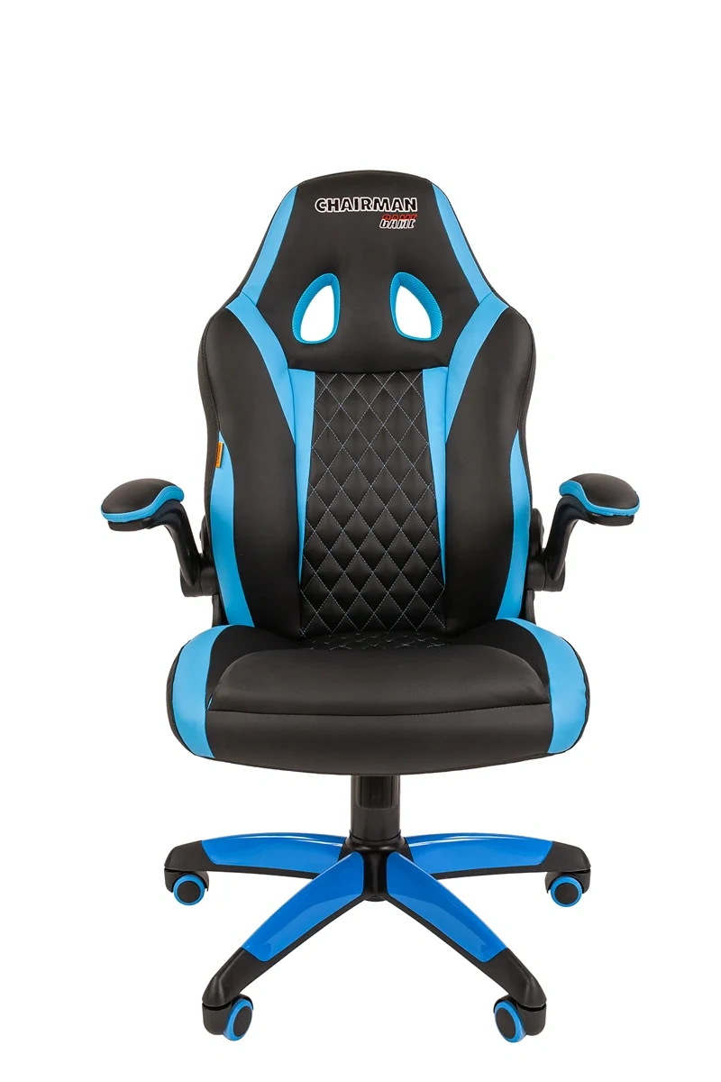 Кресло геймера Chairman Game 15 экокожа премиум, черно-голубая, крестовина пластик
