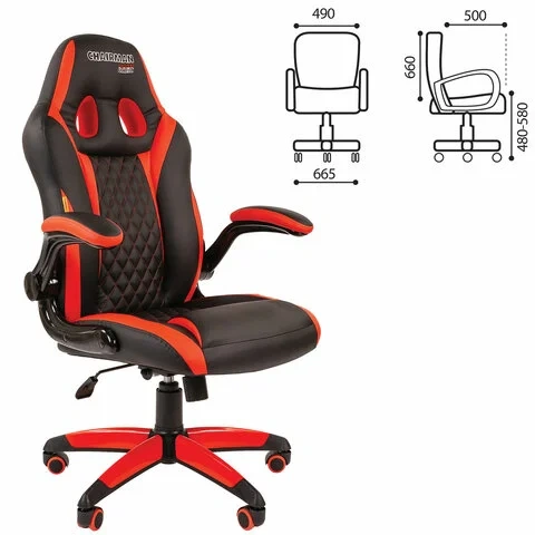 Кресло геймера Chairman Game 15 экокожа премиум, черно-красная, крестовина пластик