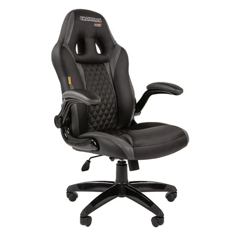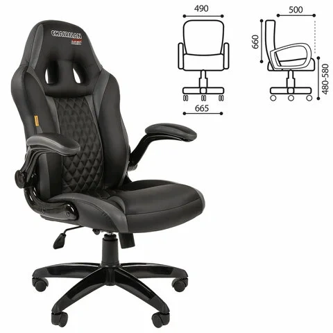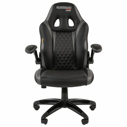 Кресло геймера Chairman Game 15 экокожа премиум, черно-серая, крестовина пластик