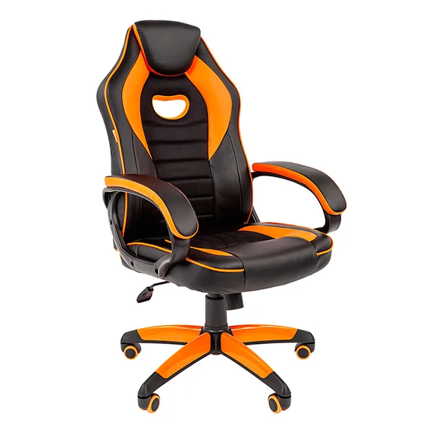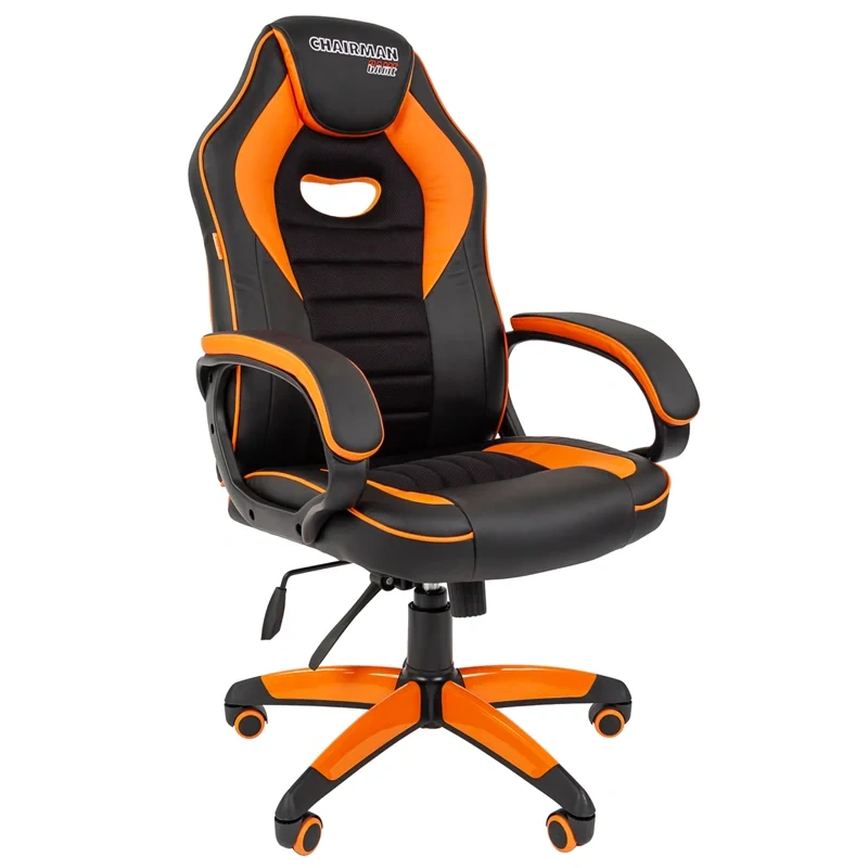 Кресло геймера Chairman Game 16 экокожа премиум, черно-оранжевая, крестовина пластик