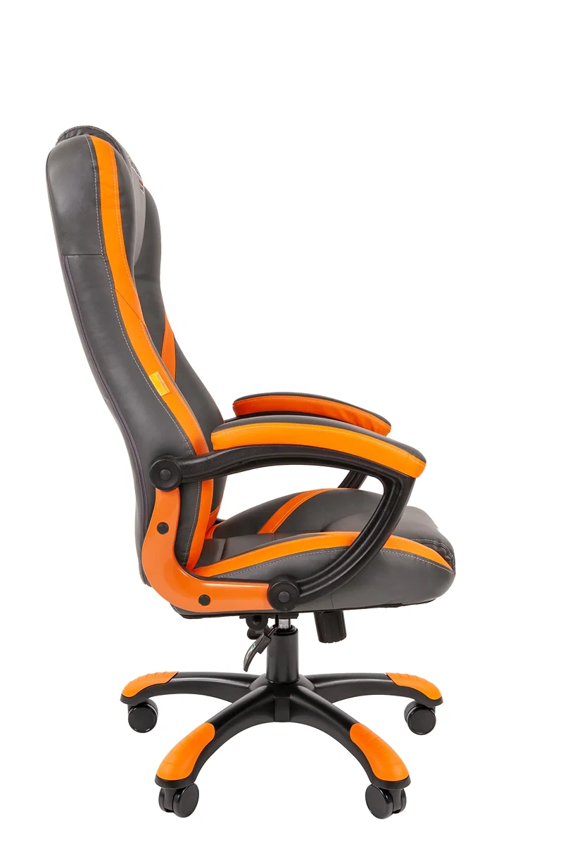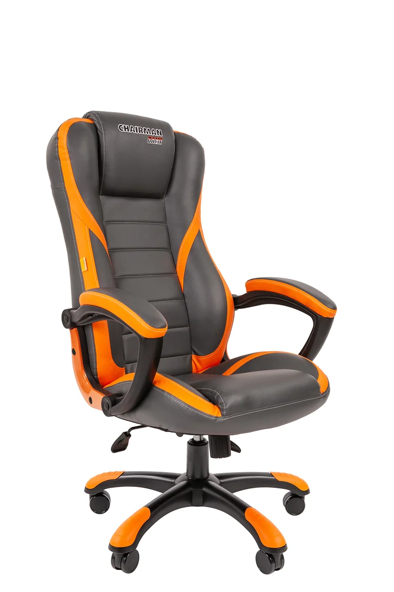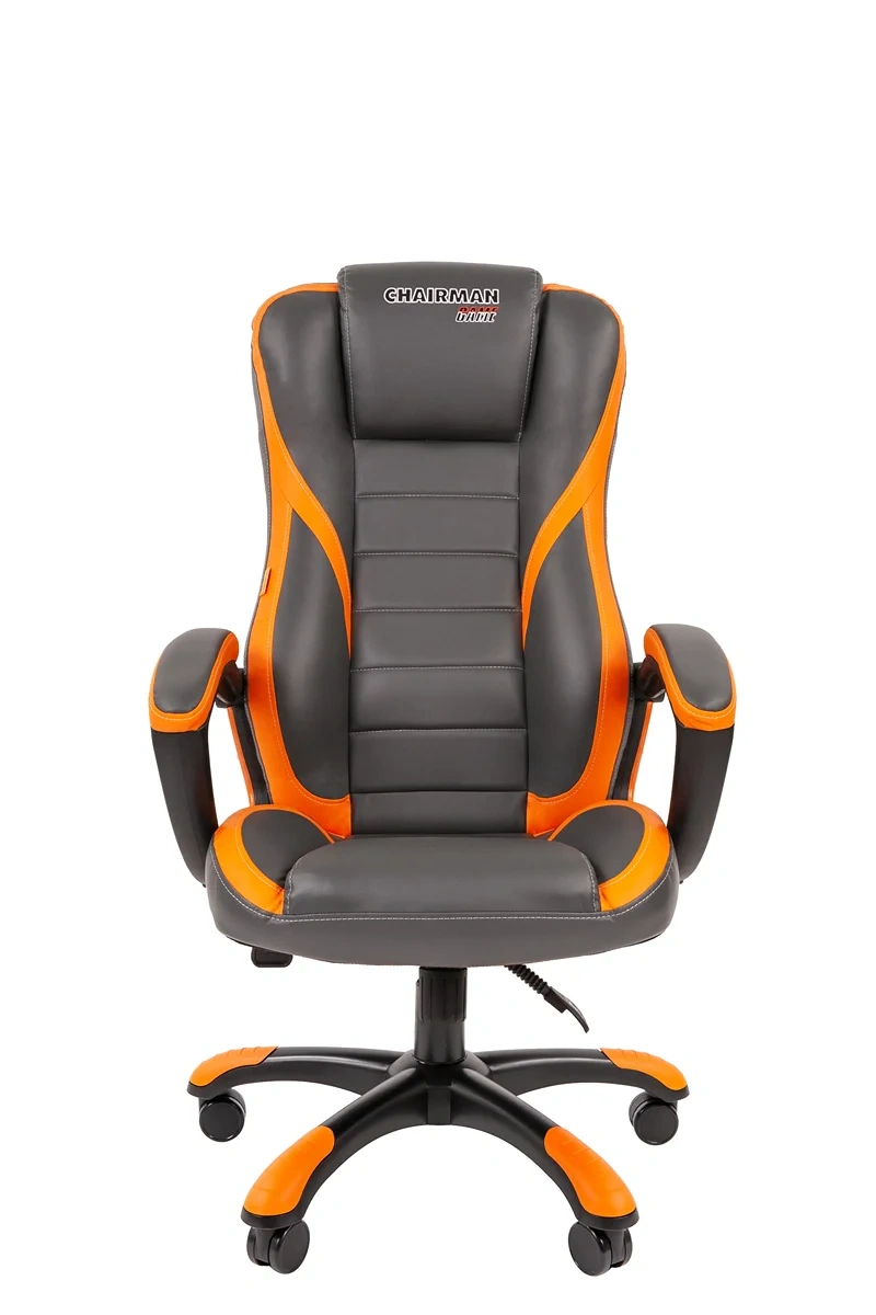 Кресло геймера Chairman Game 22 экокожа премиум, серо-оранжевая, крестовина пластик