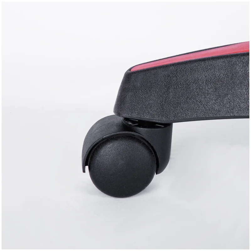 Максимальная нагрузка составляет 120 кг. Газпатрон 3 класса по стандарту BIFMA X5.1. Каркас – немонолитный, материал набивки – вспененный полиуретан, крестовина – пластиковая, подлокотники – пластиковые с накладками из экокожи, материал обивки – экокожа чёрного цвета с вставками красного цвета. Механизм качания с возможностью фиксации кресла в рабочем положении. Гарантийный срок – 12 месяцев.