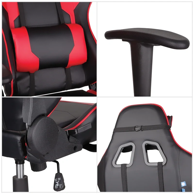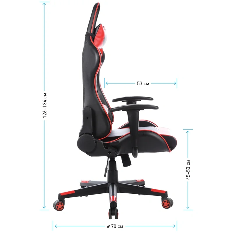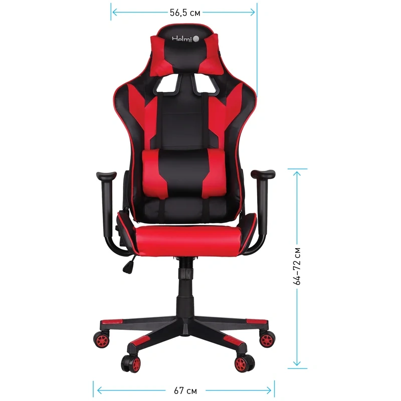 Кресло геймера Helmi Victory HL-G01, иск.кожа, черно-красная, 2 подушки, крестовина пластик
