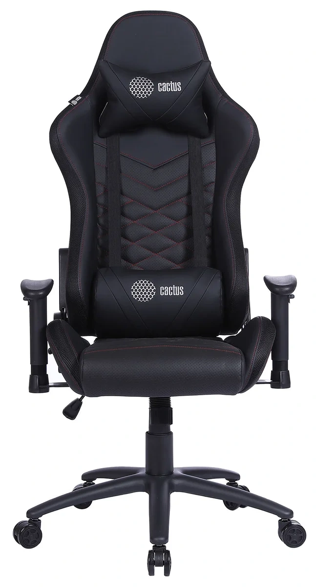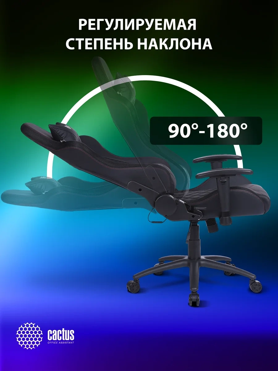Кресло игровое Cactus с RGB-подсветкой черный/красный эко.кожа с подголов. крестов. сталь