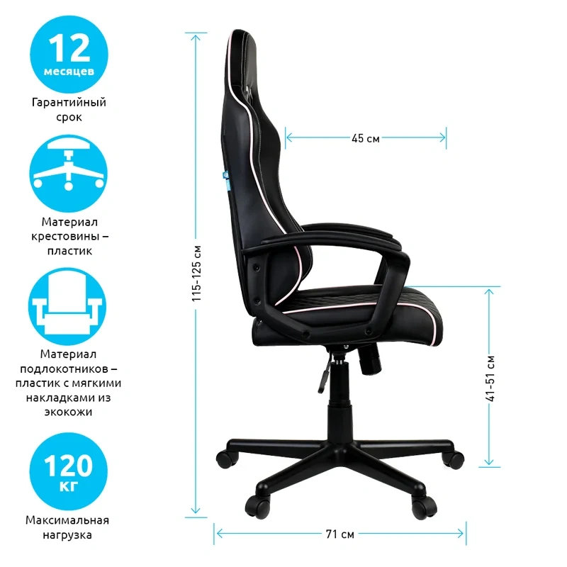 | Подлокотники | пластиковые с мягкими накладками из экокожи |