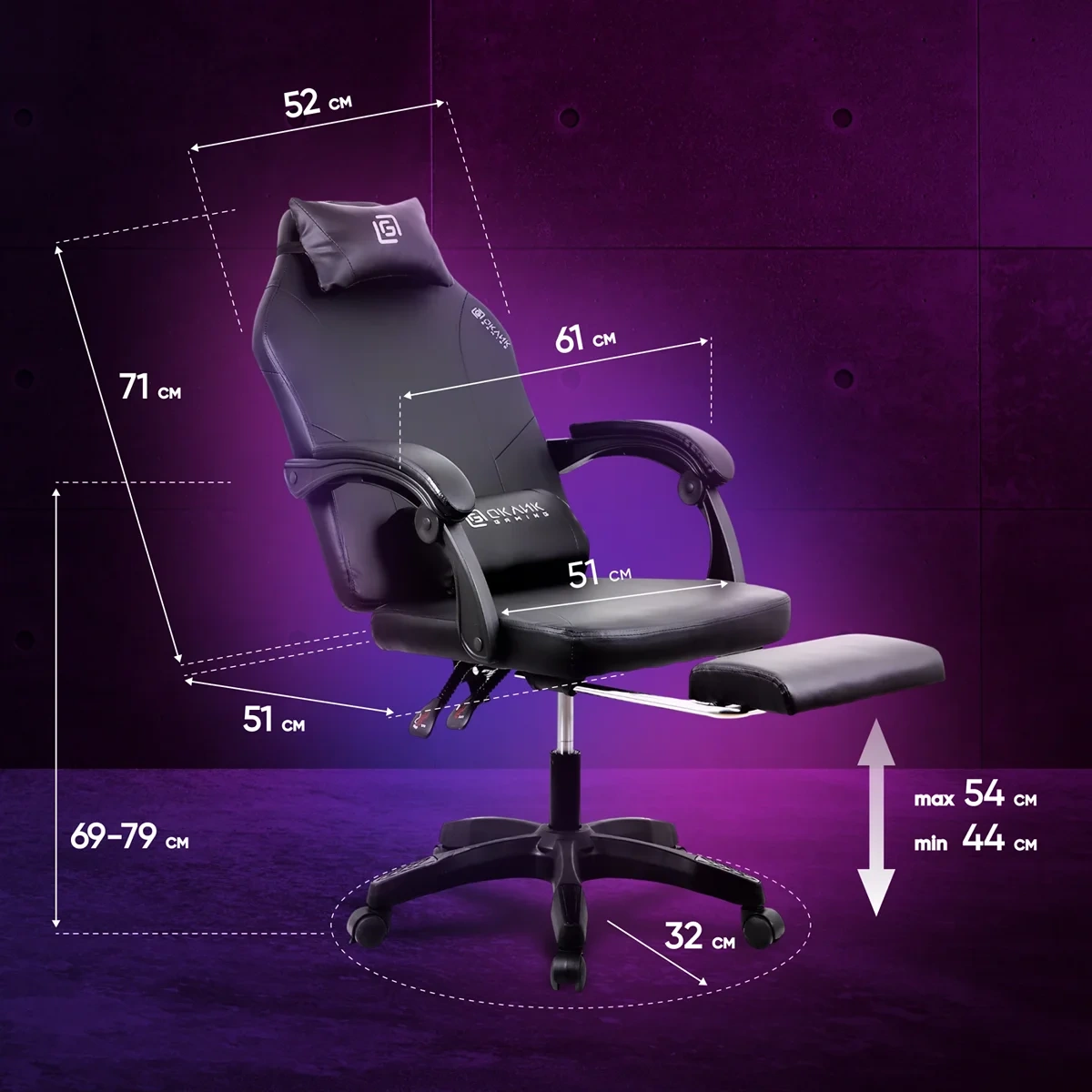 | Ширина с подлокотниками | 610 мм |