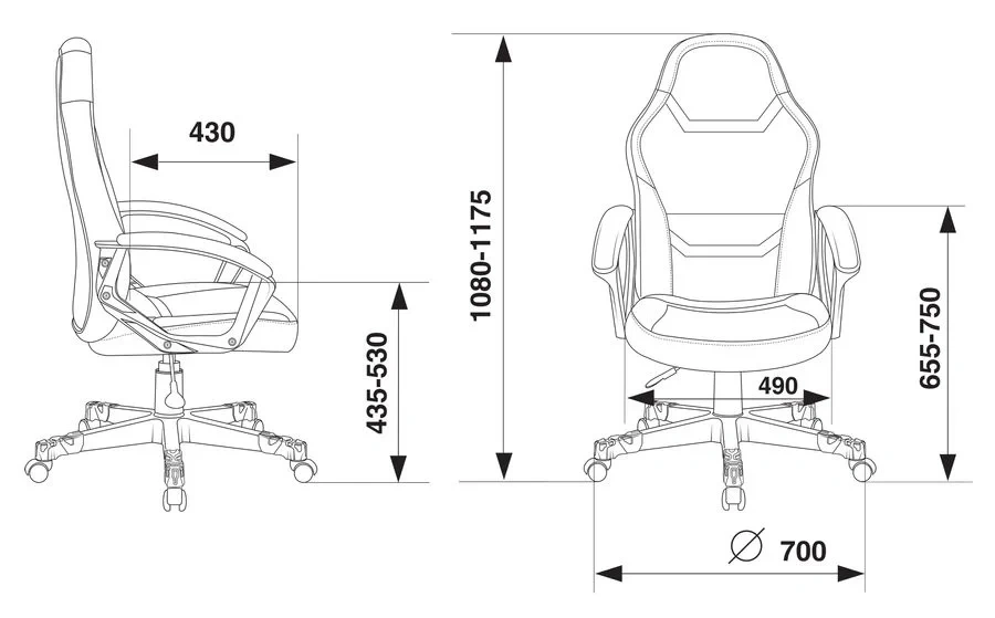 | Высота с подлокотниками MIN | 655 мм |