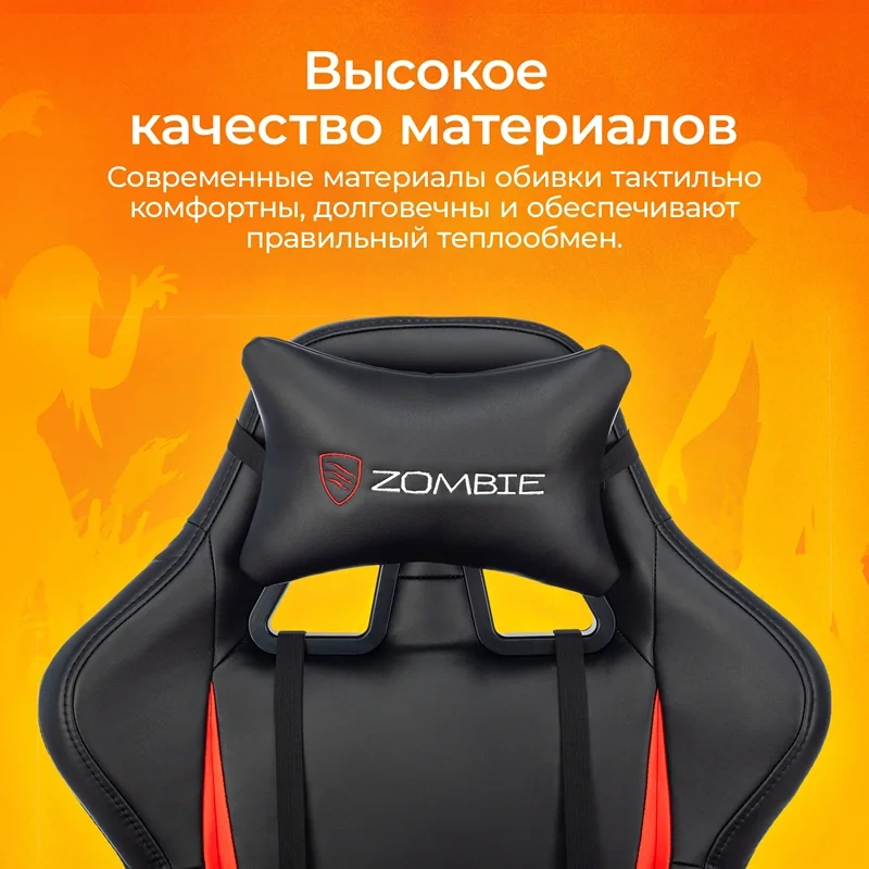 Кресло игровое Zombie GAME TETRA черный/красный эко.кожа крестов. пластик