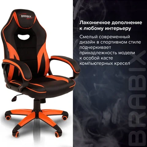 Кресло компьютерное BRABIX 'Accent GM-161', TW/экокожа, черное/оранжевое, 532577, 7083505