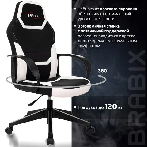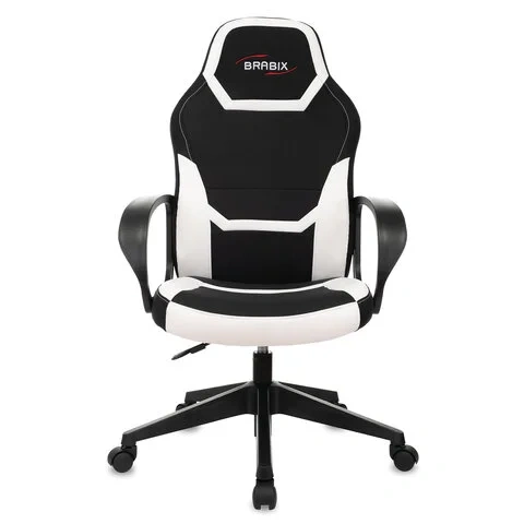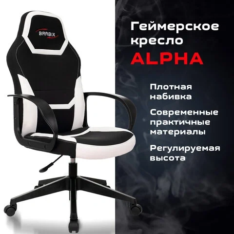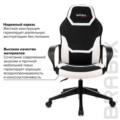 Кресло компьютерное BRABIX 'Alpha GM-018', ткань/экокожа, черное/белое, 532640, GM-018_532640