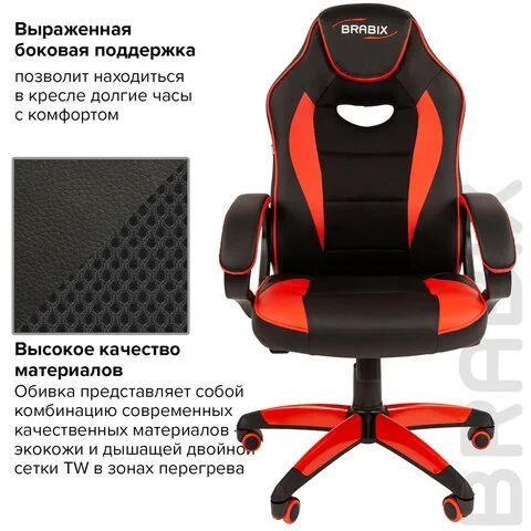 Кресло компьютерное BRABIX 'Blaze GM-162', TW/экокожа, черное/красное, 532580, 7083508