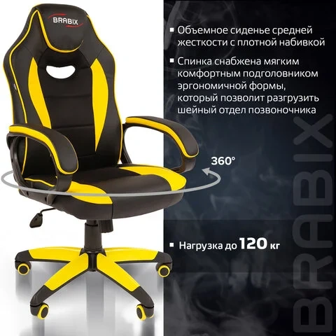 Кресло компьютерное BRABIX 'Blaze GM-162', TW/экокожа, черное/желтое, 532579, 7083507