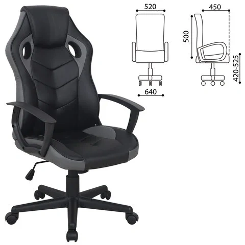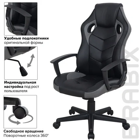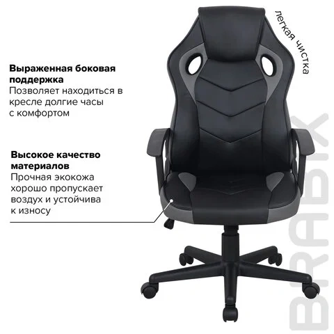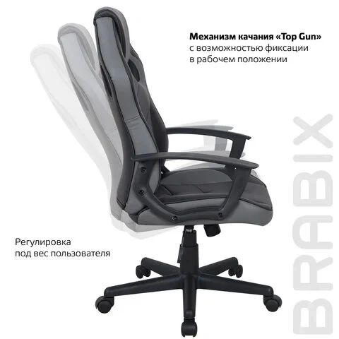 Кресло компьютерное BRABIX 'Fighter GM-008', экокожа, черное/серое, 532507