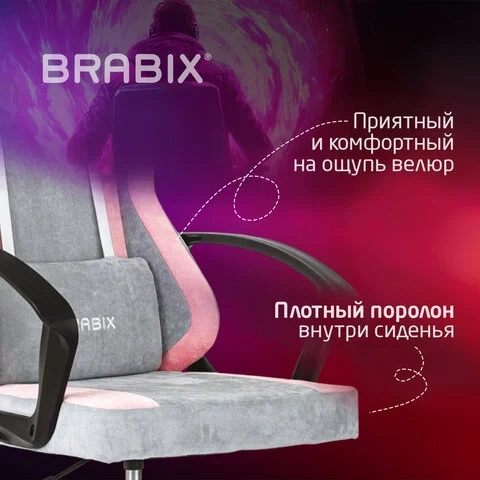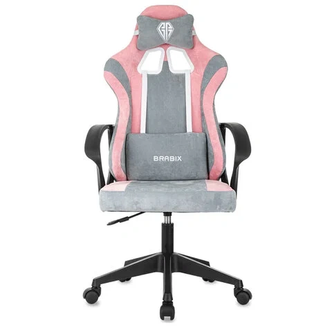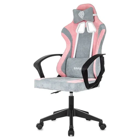 Кресло компьютерное BRABIX 'Forcer GM-127', 2 подушки, ткань, розовое/серое, 533215
