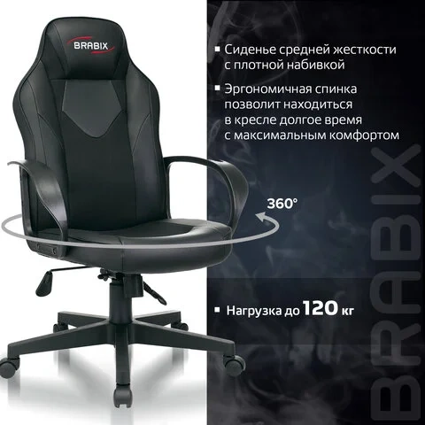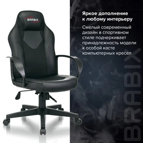 Кресло компьютерное BRABIX 'Game GM-017', экокожа/ткань, черное, 532641, GM-017_532641