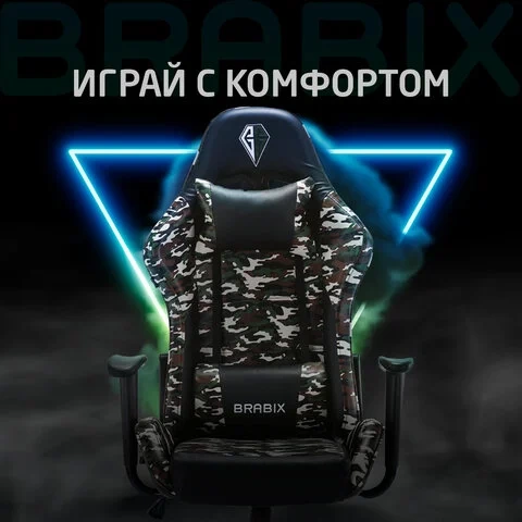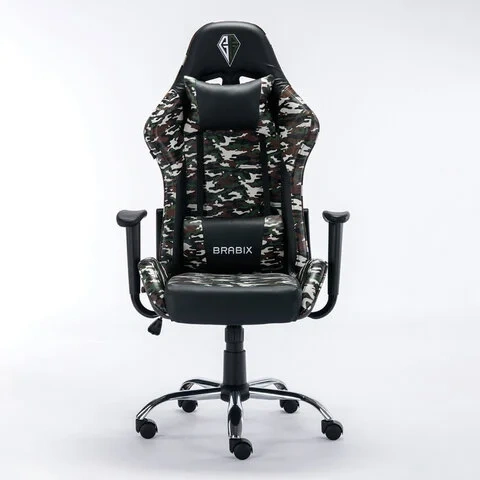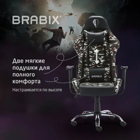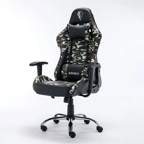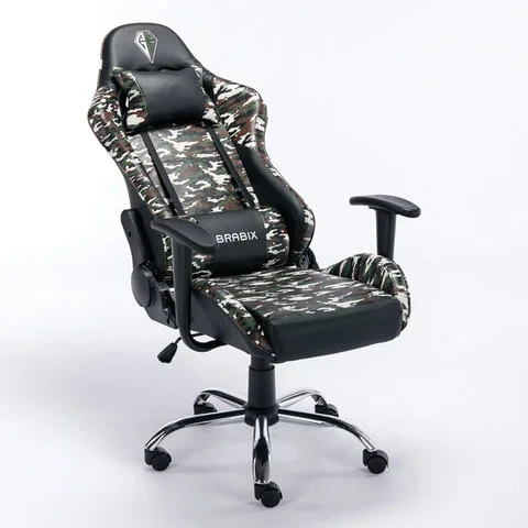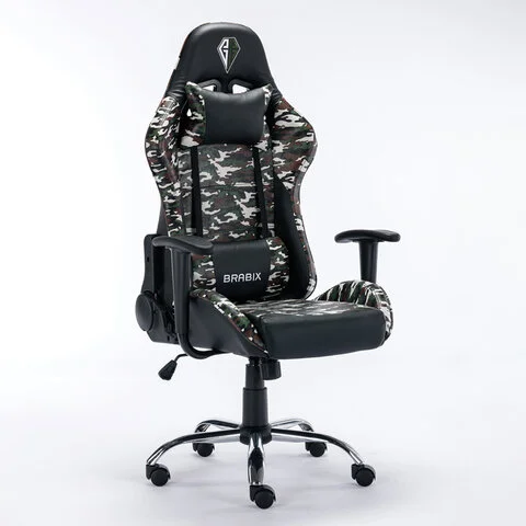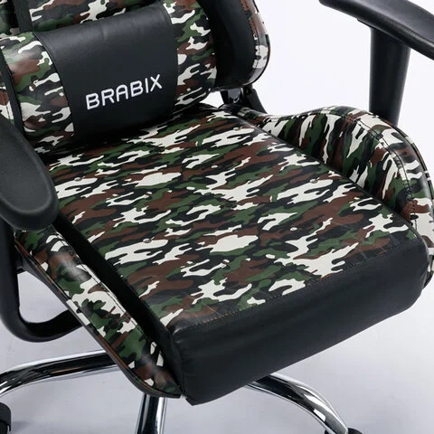 Кресло компьютерное BRABIX 'Military GM-140', две подушки, экокожа, черное с рисунком милитари, 5328