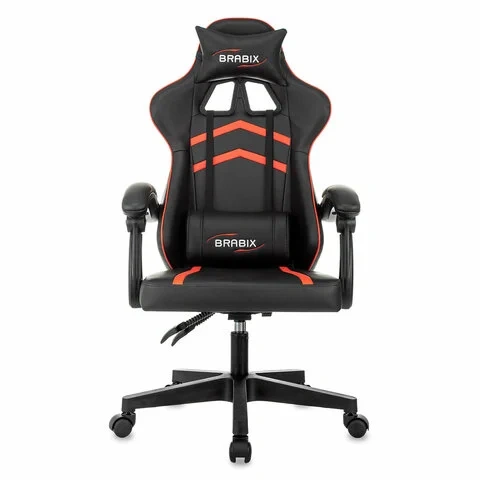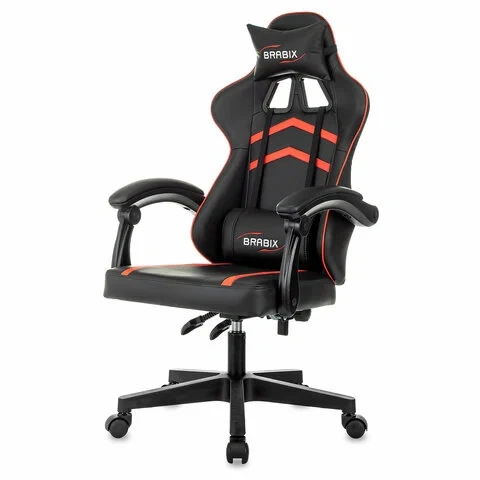 Кресло компьютерное BRABIX 'Shooter GM-123', 2 подушки, экокожа, черное/красное, 533190