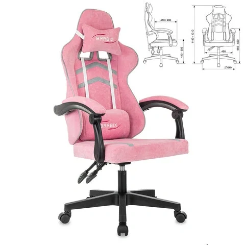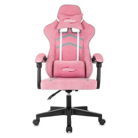 Кресло компьютерное BRABIX 'Shooter GM-123', 2 подушки, ткань, розовое/серое, 533213