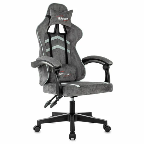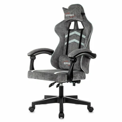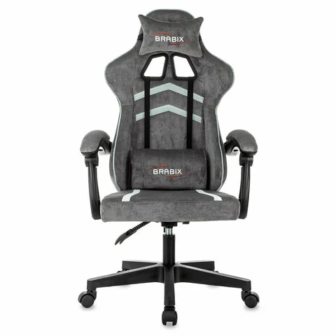 Кресло компьютерное BRABIX 'Shooter GM-123', 2 подушки, ткань, серое, 533192
