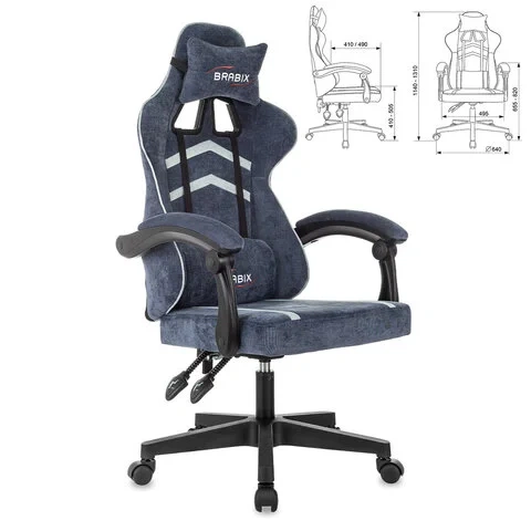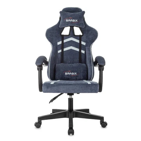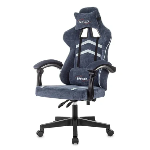 Кресло компьютерное BRABIX 'Shooter GM-123', 2 подушки, ткань, синее/серое, 533212