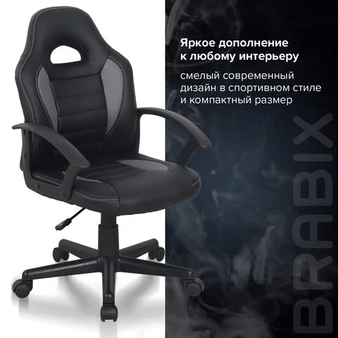 Кресло компьютерное BRABIX 'Spark GM-201', экокожа, черное/серое, 532504
