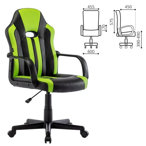 Кресло компьютерное BRABIX 'Stripe GM-202', экокожа, черное/зеленое, 532511