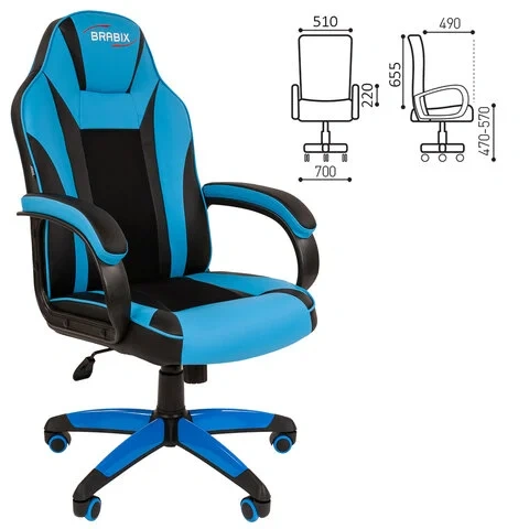 Кресло компьютерное BRABIX 'Tanto GM-171', TW/экокожа, черное/голубое, 532575, 7083503