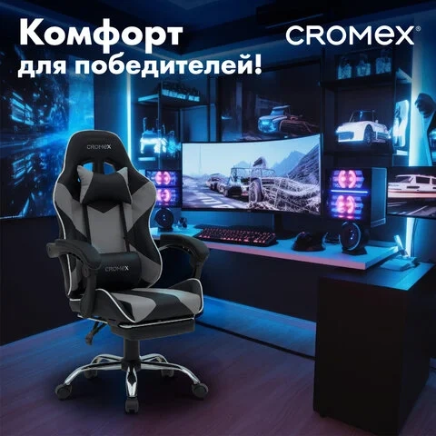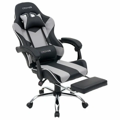 Кресло компьютерное CROMEX (КРОМЕКС) 'Wave GM-145', вибромассаж, подножка, подушки, экокожа, черное/