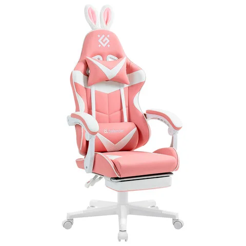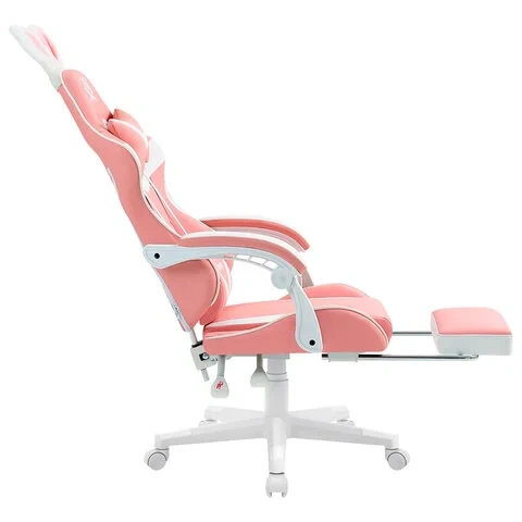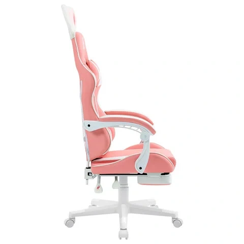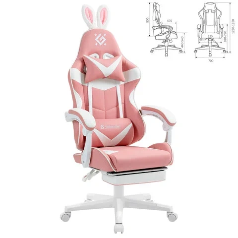 Кресло компьютерное DEFENDER 'Irifi', 2 подушки, подставка для ног, экокожа, розовое/белое, 64042