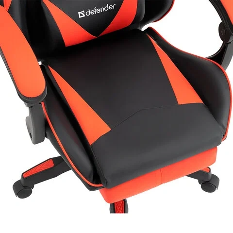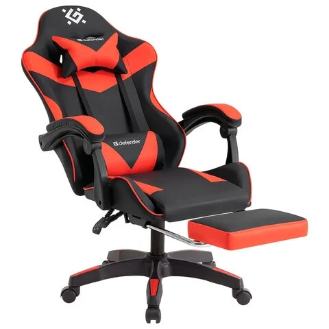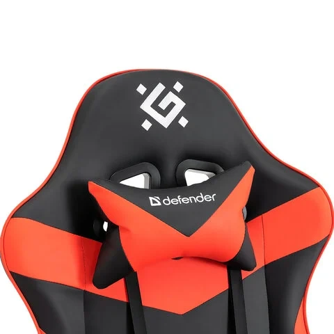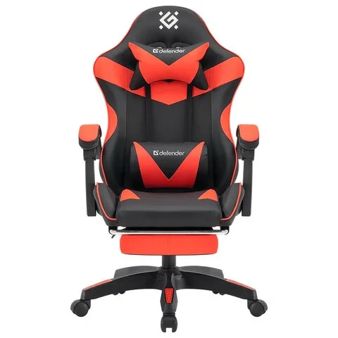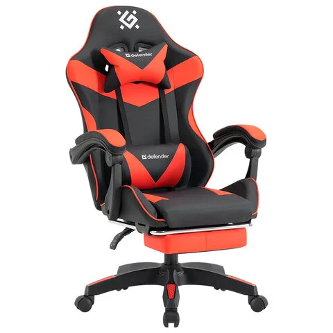 Кресло компьютерное DEFENDER 'Tornado', 2 подушки, подставка для ног, экокожа, черное/красное, ш/к 2