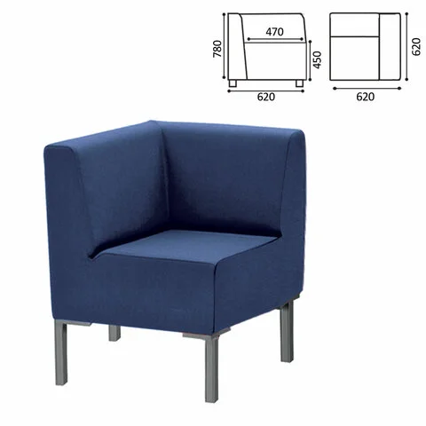 Кресло мягкое угловое 'Хост' М-43, 620х620х780 мм, без подлокотников, экокожа, темно-синее
