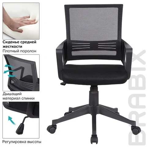 Кресло офисное Brabix Balance MG-320 ткань, черная, черная сетка, крестовина пластик
