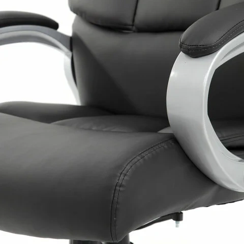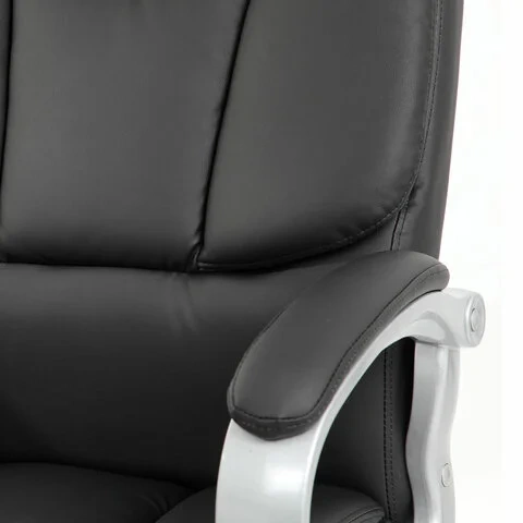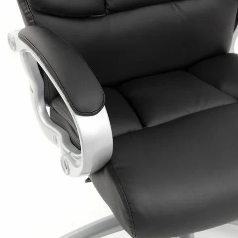 Обивка кресла выполнена из устойчивой к износу экокожи - современного материала на хлопковой основе. Эта обивка позволит сохранить презентабельный вид кресла на протяжении всего срока эксплуатации.