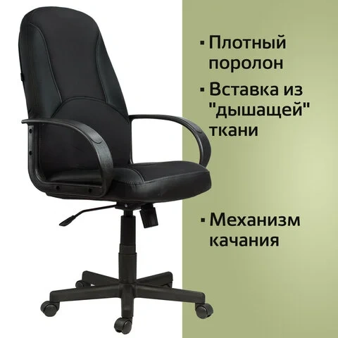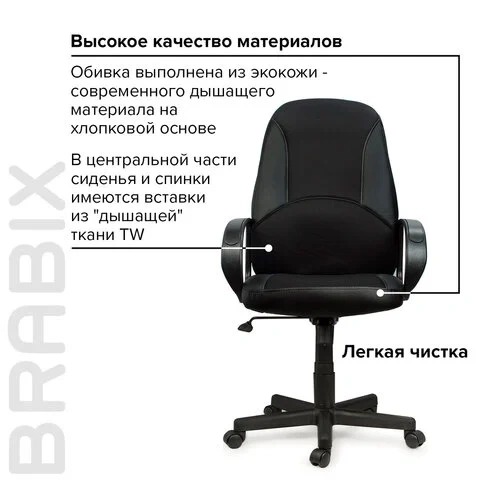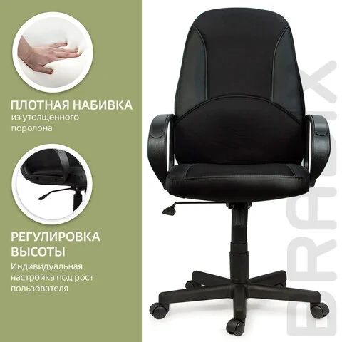 Кресло офисное Brabix City EX-512 кожзам, черный, ткань, черная, крестовина пластик