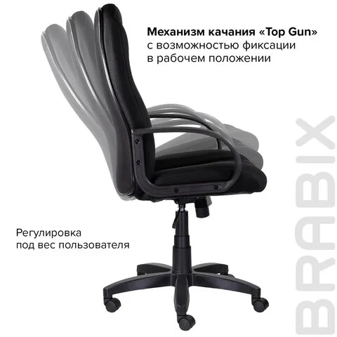 Модель оснащена механизмом качания 'Top-Gun' с регулировкой под вес и возможностью фиксации в рабочем положении.