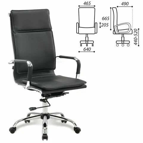 Конструкция кресла отвечает всем нормам современной эргономики: высокая спинка, упругая набивка и хромированные подлокотники с противоскользящими накладками. Всё это обеспечит необходимым комфортом пользователя.