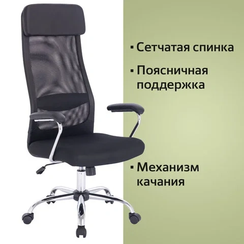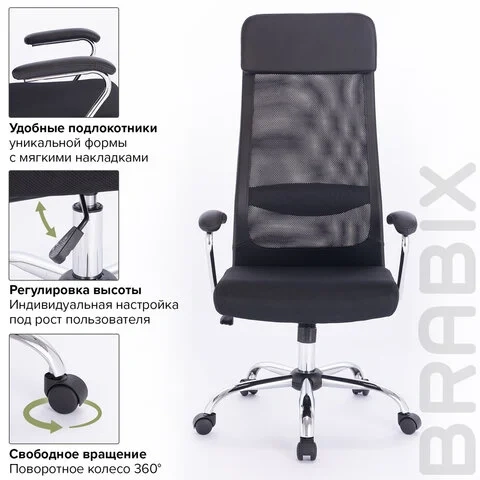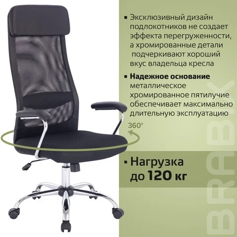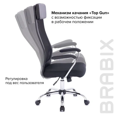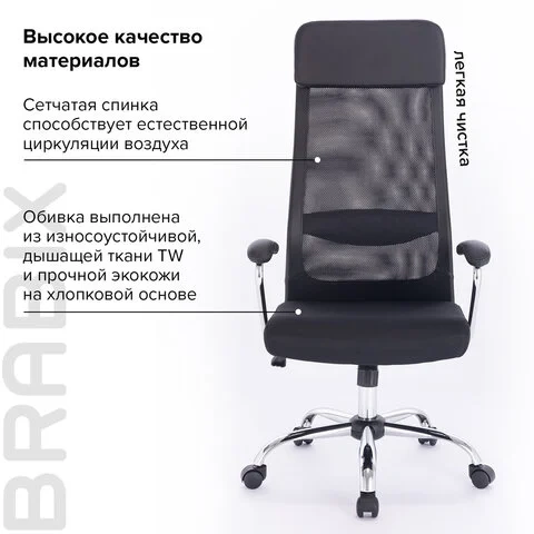 Кресло офисное BRABIX 'Flight EX-540', хром, ткань TW, сетка, черное, 532515