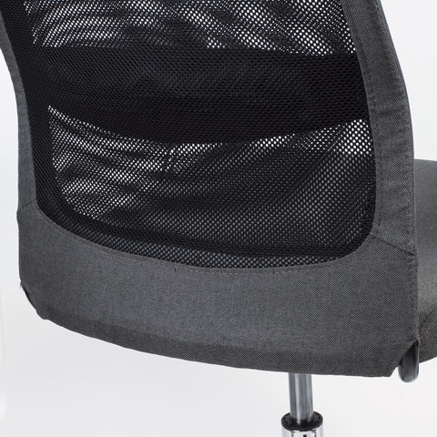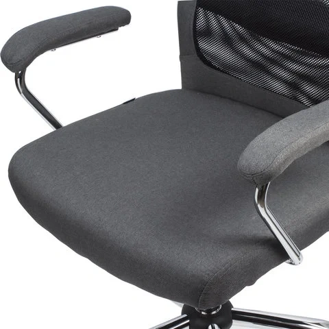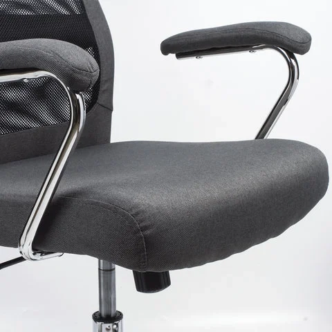 Кресло сочетает обивку из износоустойчивой ткани и сетки. Мебельная ткань на сиденье и подлокотниках обеспечивает длительную эксплуатацию и практичность, а сетчатая спинка способствует естественной циркуляции воздуха.
