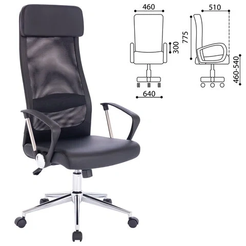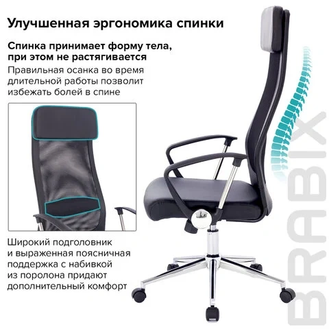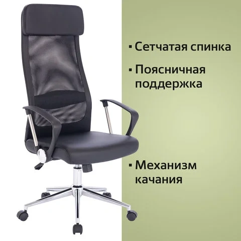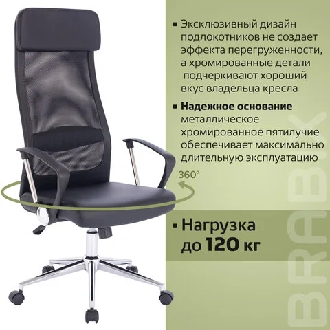 Кресло руководителя Brabix Flight R EX-541 экокожа-сетка, черная, крестовина хром