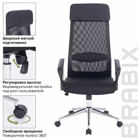 Кресло руководителя Brabix Flight R EX-541 сетка, черная, крестовина хром