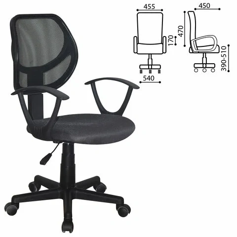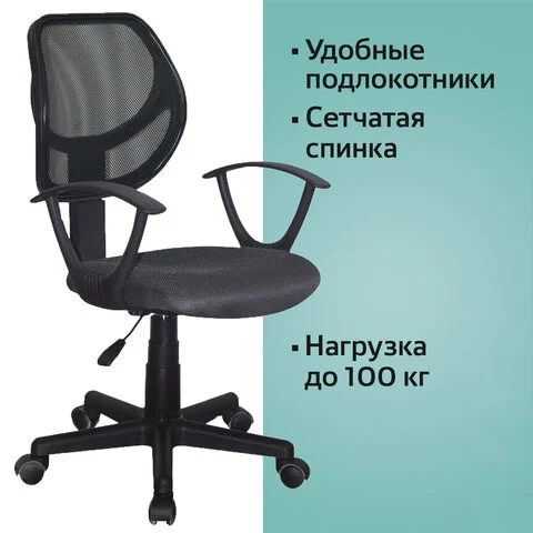 Кресло офисное Brabix Flip MG-305 ткань TW, серая-черная, крестовина пластик