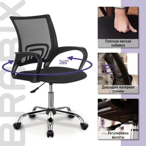 Неприхотливая модель подходит для использования в домашних условиях и в офисе. Кресла марки BRABIX отличаются современным дизайном, эргономикой, аккуратным исполнением и хорошим соотношением цены и качества.