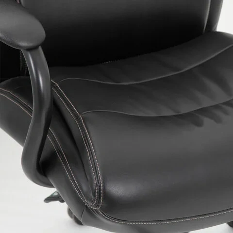 Обивка кресла выполнена из устойчивой к износу экокожи - современного материала на хлопковой основе. Эта обивка позволит сохранить презентабельный вид кресла на протяжении всего срока эксплуатации.