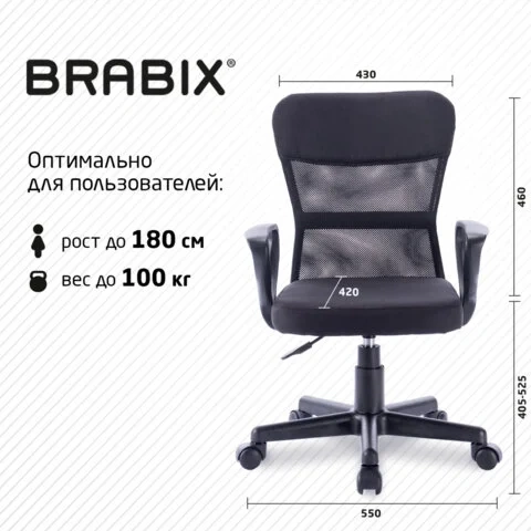 Кресло офисное Brabix Jet MG-315 ткань, черная, крестовина пластик