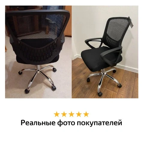 Спинка кресла выполнена из прочного сетчатого акрила с оригинальным 'узором'. Материал обладает высокой воздухопроницаемостью, легко чистится, способен подстраиваться под физиологические изгибы спины, при этом сохраняет форму и не растягивается. Залогом комфортного использования кресла также является эргономичная форма надёжного пластикового каркаса.