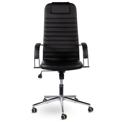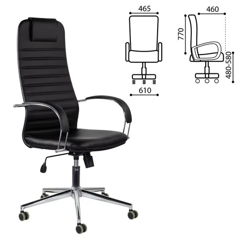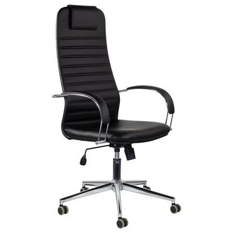 Кресло офисное Brabix Pilot EX-610 CH кожзам, черный, крестовина хром