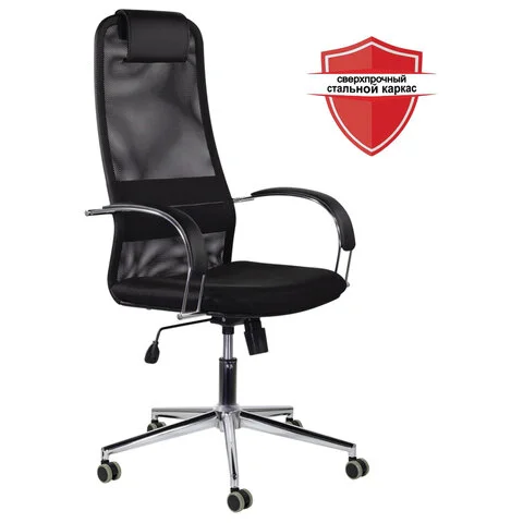 Кресло офисное Brabix Pilot EX-610 CH ткань, черная, сетка, черная, крестовина хром