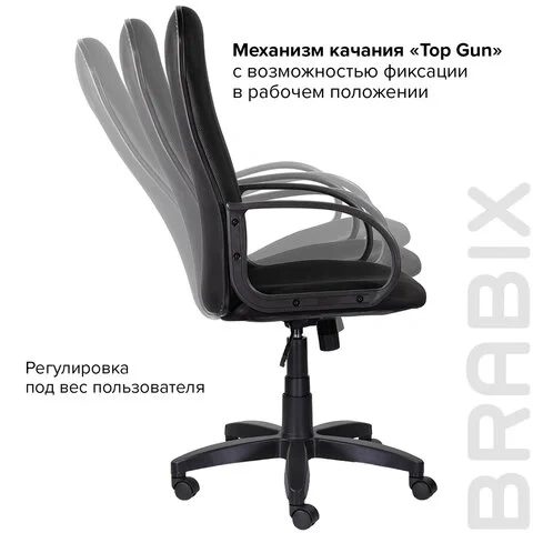 Модель оснащена механизмом качания 'Top-Gun' с регулировкой под вес и возможностью фиксации в рабочем положении.