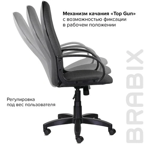Модель оснащена механизмом качания 'Top-Gun' с регулировкой под вес и возможностью фиксации в рабочем положении.