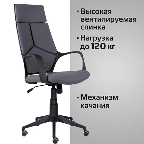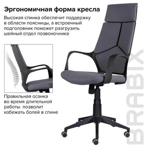Кресло руководителя Brabix Prime EX-515 ткань, серая, пластиковая крестовина